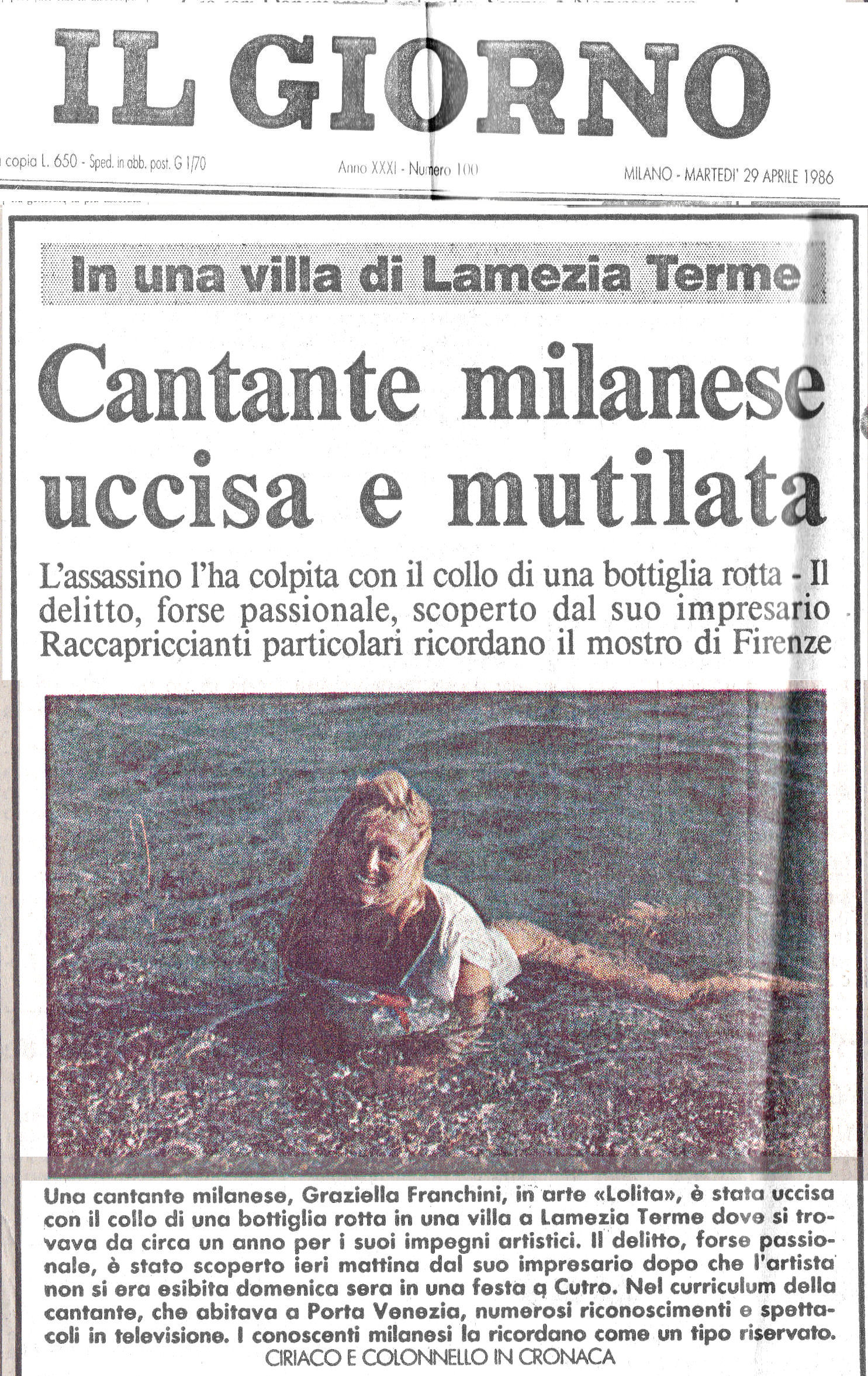 Poi, finite le medie, la persi completamente di vista. Qualche anno dopo, io e altre ex compagne fummo sorprese ed entusiaste per il suo successo: quasi non ci sembrava vero di aver frequentato per tanto tempo una futura vip. Ammiravamo moltissimo le sue interpretazioni, così intense, ed eravamo ovviamente sue accanite fans. Quello che però ci lasciava perplesse era la trasformazione così radicale della sua immagine: da quasi bruna era diventata biondissima e sfoggiava un trucco pesantissimo che la rendeva quasi irriconoscibile. Per non parlare poi dell’abbigliamento, troppo audace persino per quei tempi in cui tutte indossavamo la minigonna. E che dire del nome d’arte? “Lolita” non era certo solo un nome per indicare una giovanissima, come sembravano credere i più. Chi ha visto il film di Kubrick (uscito tra l’altro pochi anni prima, nel 1962, e vietato ai minori di 18 anni), o chi ha letto il capolavoro di Nabokov lo sa bene. Era un nome pieno di significati oscuri e inquietanti, allusivo di malcelate morbosità. Insomma avevano voluto trasformare la nostra Graziella, così schietta, spontanea, pulita, in un personaggio torbido per attrarre meglio l’attenzione. Che bisogno c’era? Non bastava la sua splendida voce, così calda, potente ed emozionante? E che la sua carriera si sia conclusa definitivamente perché non è entrata in finale a Sanremo può essere convincente? Ma non era rimasta sulla cresta dell’onda fino a quel momento, senza aver partecipato a nessun Sanremo? Che importanza poteva avere questa eliminazione per una cantante amata dal pubblico e con un curriculum di tutto rispetto? Sono i misteri dello show business. Noi, pubblico, non lo sapremo mai. Possiamo solo sospettare intrighi vari e cinici giochi di potere che non guardano in faccia nessuno. Infine, è impossibile dimenticare la sua fine raccapricciante in quel giorno di aprile. Una fine rimasta impunita, senza un colpevole, come è accaduto troppo spesso nel nostro Paese, ogni volta che persone perbene hanno incontrato sulla propria strada persone disumane e temibili.